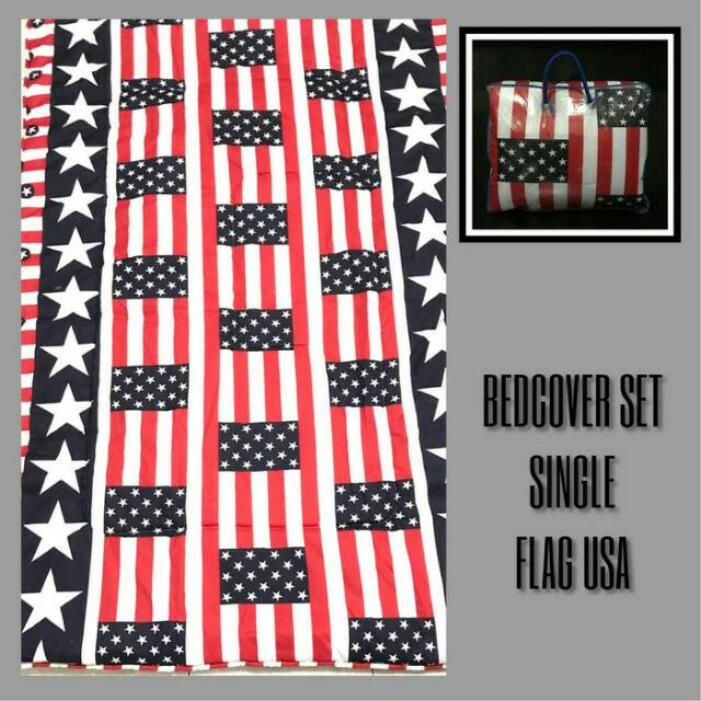 Deskripsi sprei motif bendera amerika hi dear sprei elegant bendera amerika yang nyaman lembut dan adem dengan design exclusive. Size single 120 x 200 x 20. Desainnya sendiri seperti yang dilihat memang menggunakan motif bendera amerika serikat.